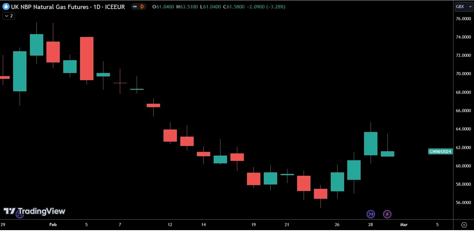 The energy markets saw prices pull back to levels not seen since 2021, although after 7 weeks of the price falling some counter movement was to be expected. For companies on flexible contracts who are looking to make purchases, the 2nd and 3rd weeks of February represented an ideal time to lock in prices as the market achieved a short-term bottom. The end of the month rise seems likely to be caused by parties looking to de-risk and lock in prices while they are at these lows. The downtrend could very well be set to continue after this period of de-risking, but there now appears to be a greater risk to the upside than there is potential for large decreases.