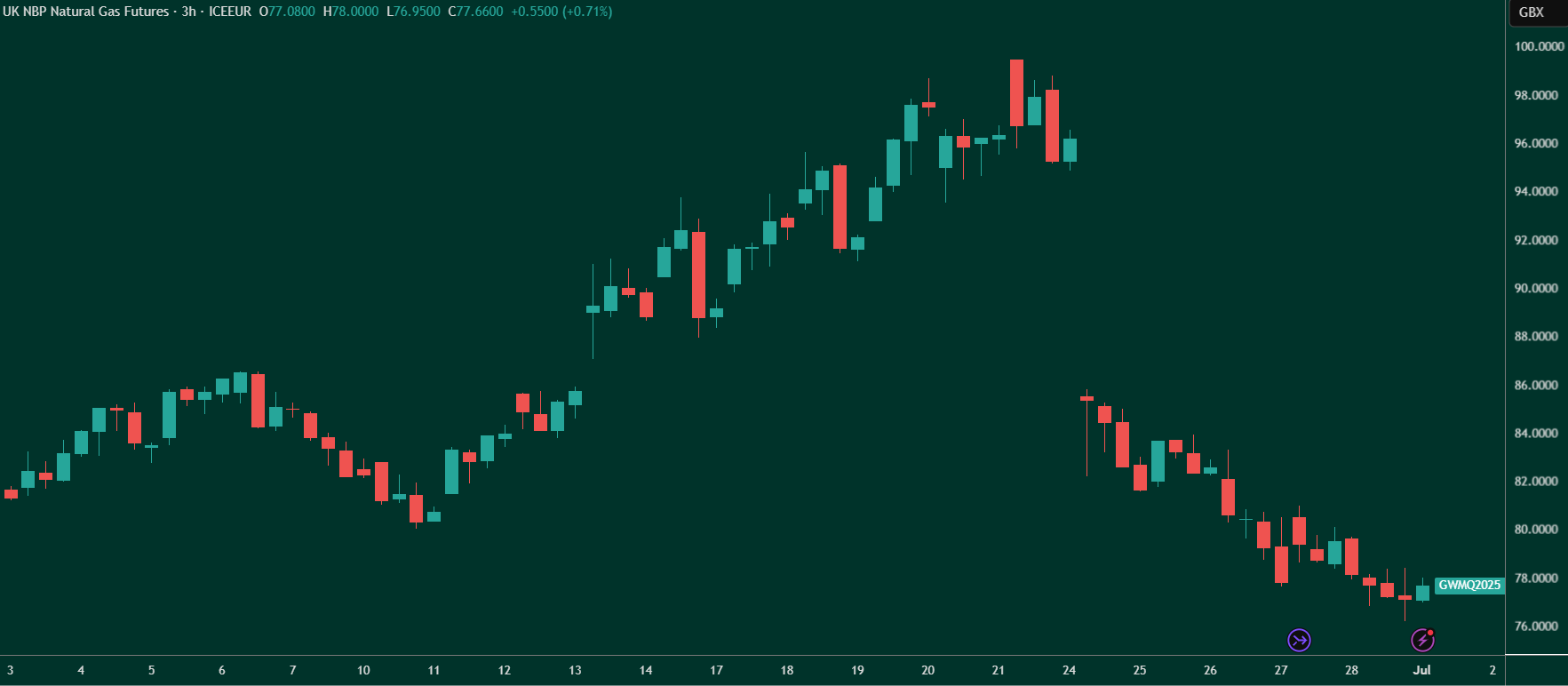 June began with negative stories driving prices higher as news broke of Ukraine launching drone attacks in Russian territory. There had previously been hopes of peace talks bringing an end to hostilities, but this was a reminder that the conflict is still on-going, and that any optimism regarding the resumption of Russian gas flows into Europe may be misplaced – particularly if the European commission refuse to change their stance towards Russia.