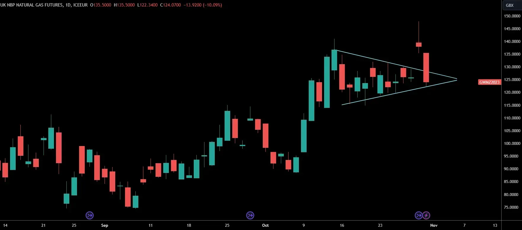 Wholesale gas prices hit their highest levels since March, and the charts seem to be currently forming a pennant. In classical charting, a pennant/flag is normally a pre-cursor to another significant upward impulse. If this particular pennant plays out this way, then we can expect to see prices return to levels not seen since January.