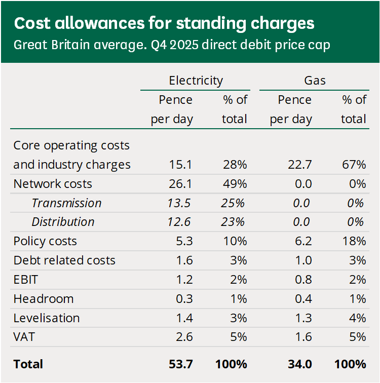 A recent government consultation found that around half of the typical electricity standing charge is made up of network costs alone, with a further quarter linked to operating and industry costs.
